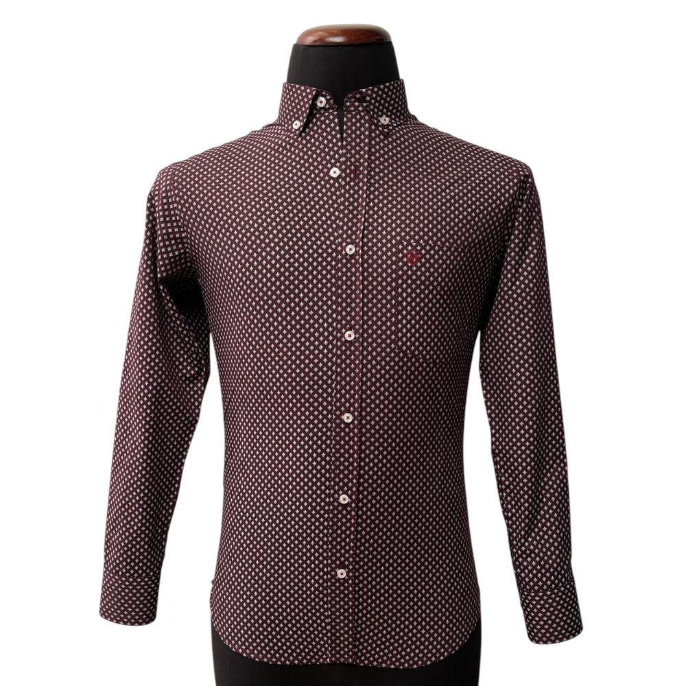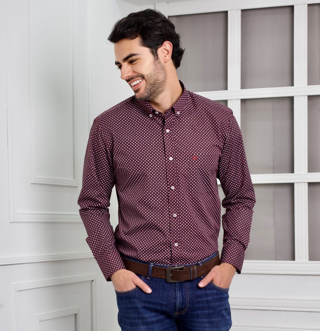 Nuestra camisa print de la línea premium MONARD Sartorial es una prenda que destaca por su estilo único y refinado. Con patrón geométrico blanco en fondo vino su diseño aporta distinción y personalidad, ideal para quienes buscan proyectar seguridad y buen gusto en cualquier ocasión.