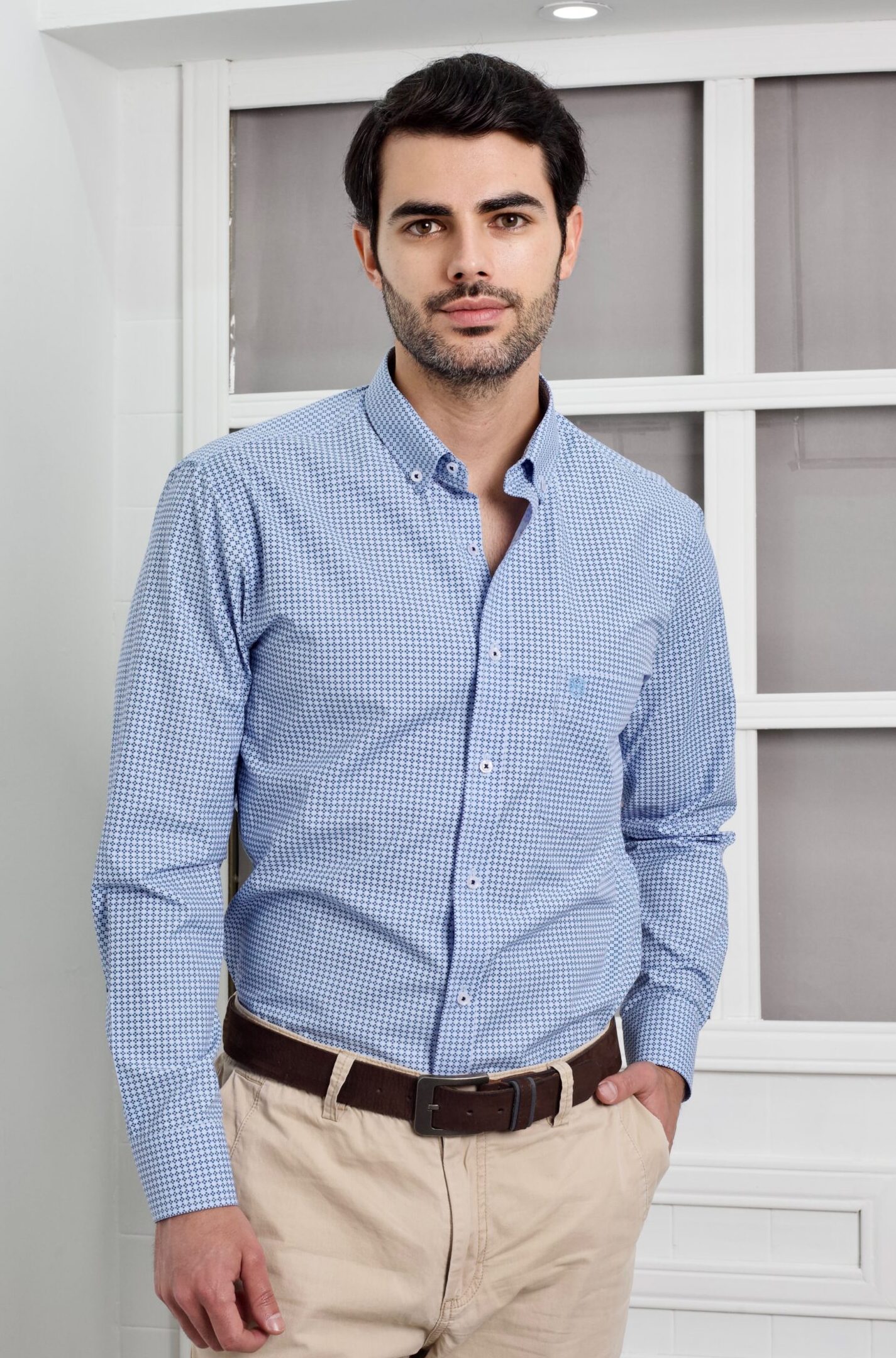 La camisa azul print de la línea premium MONARD Sartorial refleja un estilo clásico y sofisticado para el hombre moderno. Diseñada para quienes valoran la distinción en cada detalle, combina elegancia y comodidad en una prenda versátil.