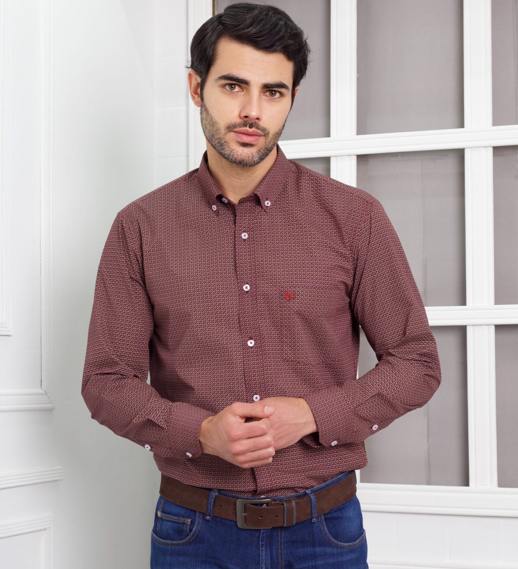 Nuestra camisa burdeos con diseño print para hombre forma parte de la línea premium MONARD Sartorial, una colección diseñada para quienes buscan distinción y elegancia en cada detalle. Con un patrón exclusivo y un corte de manga larga con bolsillo al pecho, es una prenda que combina modernidad y sofisticación en un mismo diseño.